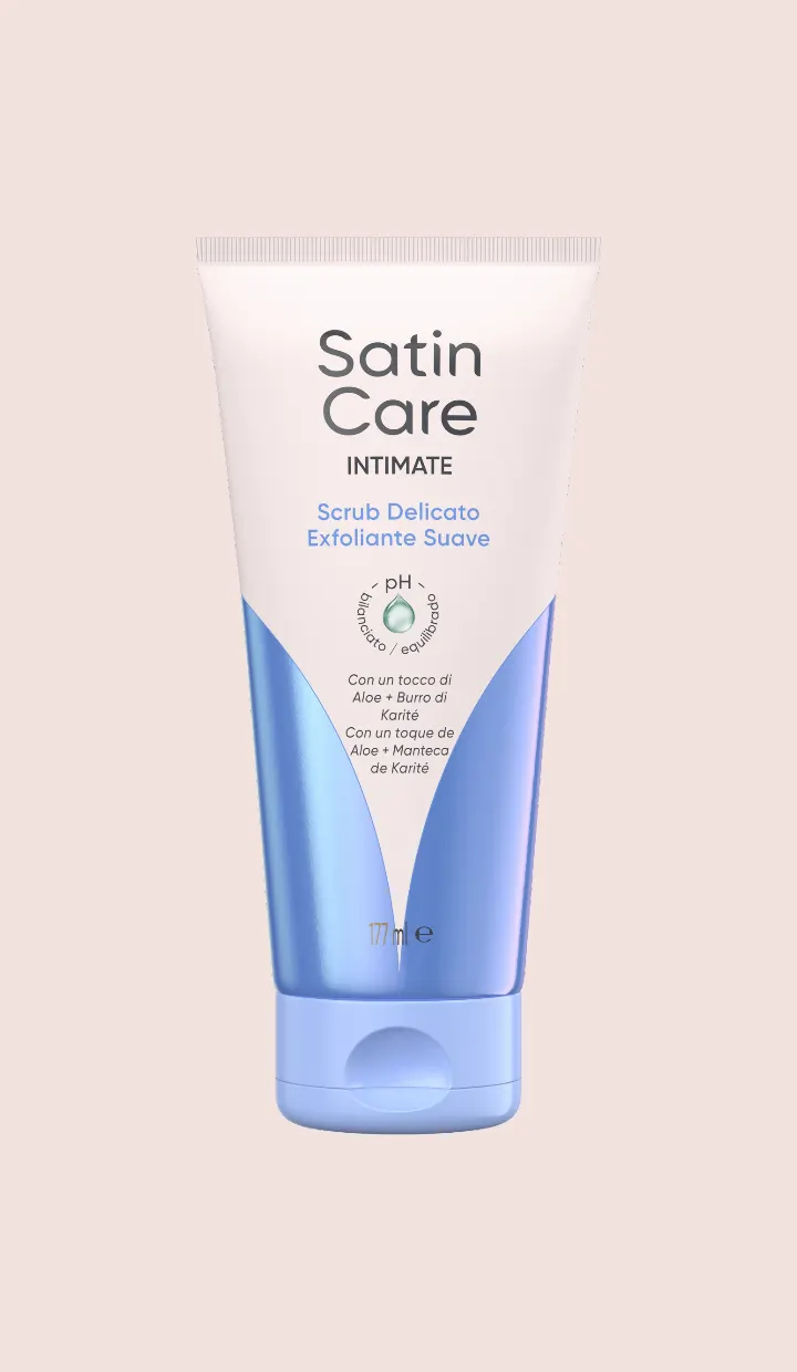El exfoliante Satin Care se puede usar durante o entre días de depilación para suavizar la piel y ayudar a protegerte de cortes. Exfolia suavemente para eliminar la piel muerta y eliminar el sebo, la suciedad y los aceites de la superficie de la piel, lo que puede provocar vellos atrapados o enquistados. Dermatólogicamente aprobado. pH equilibrado y con manteca de aloe + karité. Hecho sin parabenos, tintes, fragancias ni siliconas.